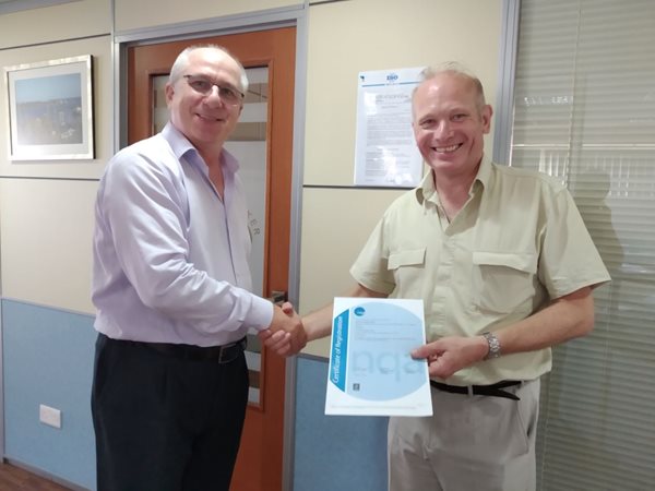 NQA Cyprus Assessor, Mike Wilson met with the General Director, Mr. Oleksii Paiul, of Bunker Holdings Ltd to assess their systems but also to award them their certificate following the news of their recent achievement.