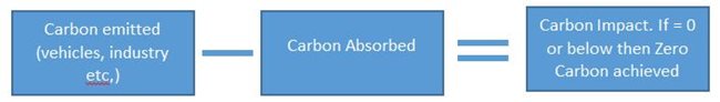 Net Zero Carbon (also referred to as Carbon Neutrality) means that an organization has to take out of the atmosphere as much carbon as it emits into the atmosphere. The carbon impact when you take an equal amount of emission away from an equal amount of absorption (also known as sequestration) is therefore zero.