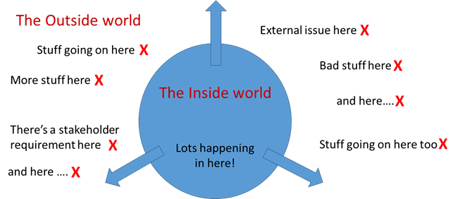 Until relatively recently ISO management system standards focussed mainly on ‘The Inside World’ (figure 1).  They placed great emphasis on ensuring that the organization’s management system was appropriately structured to efficiently and effectively produced its intended results.