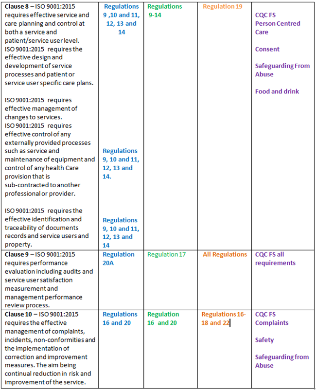 • This can be achieved by using the ISO 9001:2015 standard to establish processes in line with the CQC Standards of Quality and Safety and the Health & Social Care Act by monitoring, reporting  and internally auditing the processes.