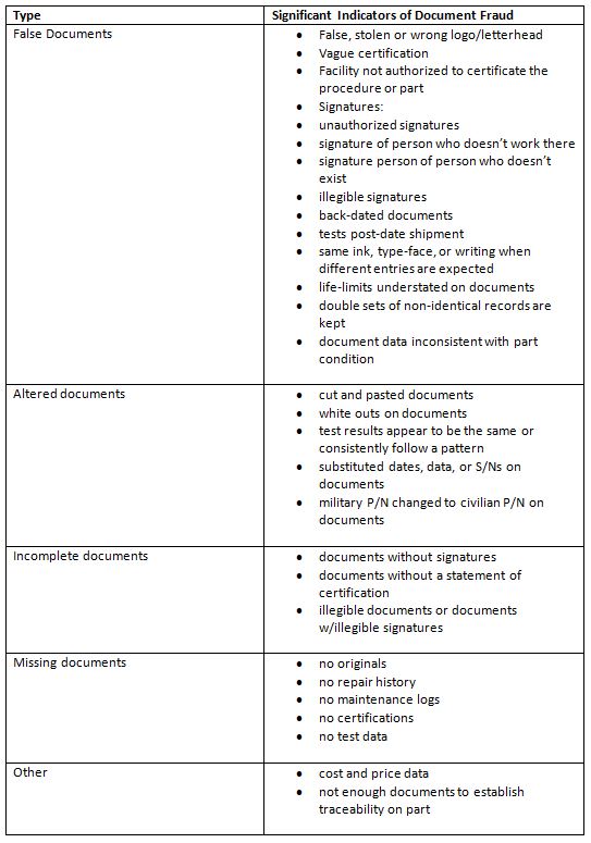 La falsificación es un problema en la industria aeroespacial y puede tener repercusiones catastróficas para dicha industria. Cada organización necesita vigilar y jugar su parte en la reducción de materiales falsificados en la industria.