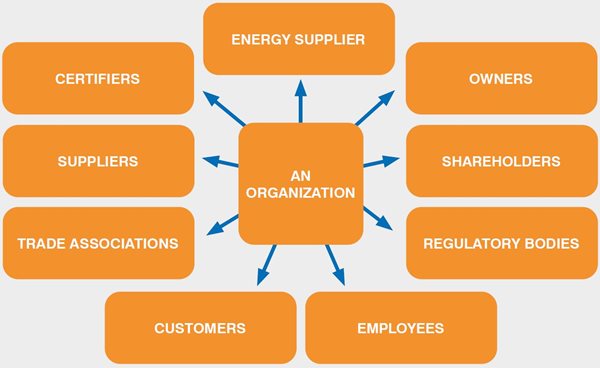 Aunque el término "partes interesadas" puede no ser nuevo dentro de la ISO 50001, la mayoría de las organizaciones probablemente entenderán mejor el término "Stakeholder". A partir de la comprensión del contexto, es decir, de las cuestiones conceptuales o macro de la organización, la determinación de las partes interesadas proporcionará una comprensión de la energía dentro de la organización.