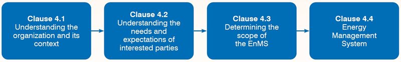 No hay requisitos específicos que una organización deba cumplir en esta sección. Sin embargo, establece los parámetros dentro de los cuales se puede utilizar la norma ISO 50001 y proporciona el resultado general previsto de un SGE: