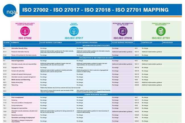 El documento de mapeo de a continuación muestra la relación entre los controles originales de la ISO 27001 y las extensiones o adiciones introducidas por las otras normas. Coloca todos los controles alineados y en el orden original de ISO 27001/ ISO 27002.  Le ayudará a interpretar las normas y determinar los controles aplicables en su organización.