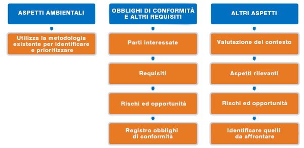 Uno dei requisiti della norma ISO 14001:2015 è che l'organizzazione determina i rischi e le opportunità che deve affrontare al fine di: