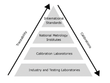 Nel processo di calibrazione, il valore visualizzato dell'apparecchiatura di misurazione viene confrontato con il risultato della misurazione di un dispositivo di misurazione diverso che è noto per funzionare correttamente e con precisione, che a sua volta è stato fatto coincidere direttamente o indirettamente con una nazionale (o internazionale) strumento di riferimento. In breve, per poter confrontare i risultati delle misurazioni, devono essere “riferibili” ad uno standard nazionale o internazionale attraverso una catena di misurazioni comparative.