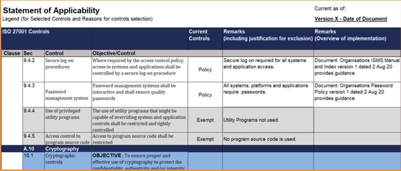 Tal como acontece com a maioria das outras normas de sistemas de gestão ISO, os requisitos da ISO 27001 que devem ser satisfeitos são especificados nas cláusulas 4.0 - 10.0. Ao contrário da maioria das outras normas de sistemas de gestão ISO, uma organização tem de cumprir todos os requisitos das cláusulas 4.0 - 10.0; não pode declarar uma ou mais cláusulas como não aplicáveis a si.